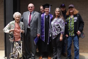 The trip out to Nacogdoches was thankfully uneventful. We arrived in time to find a parking place reasonably close and get there in time to say hi to everyone before the ceremony began. Which was none too soon. It was a nice ceremony, but it always seems to take longer than necessary. After the graduation, we all gathered for pictures – family and friends.