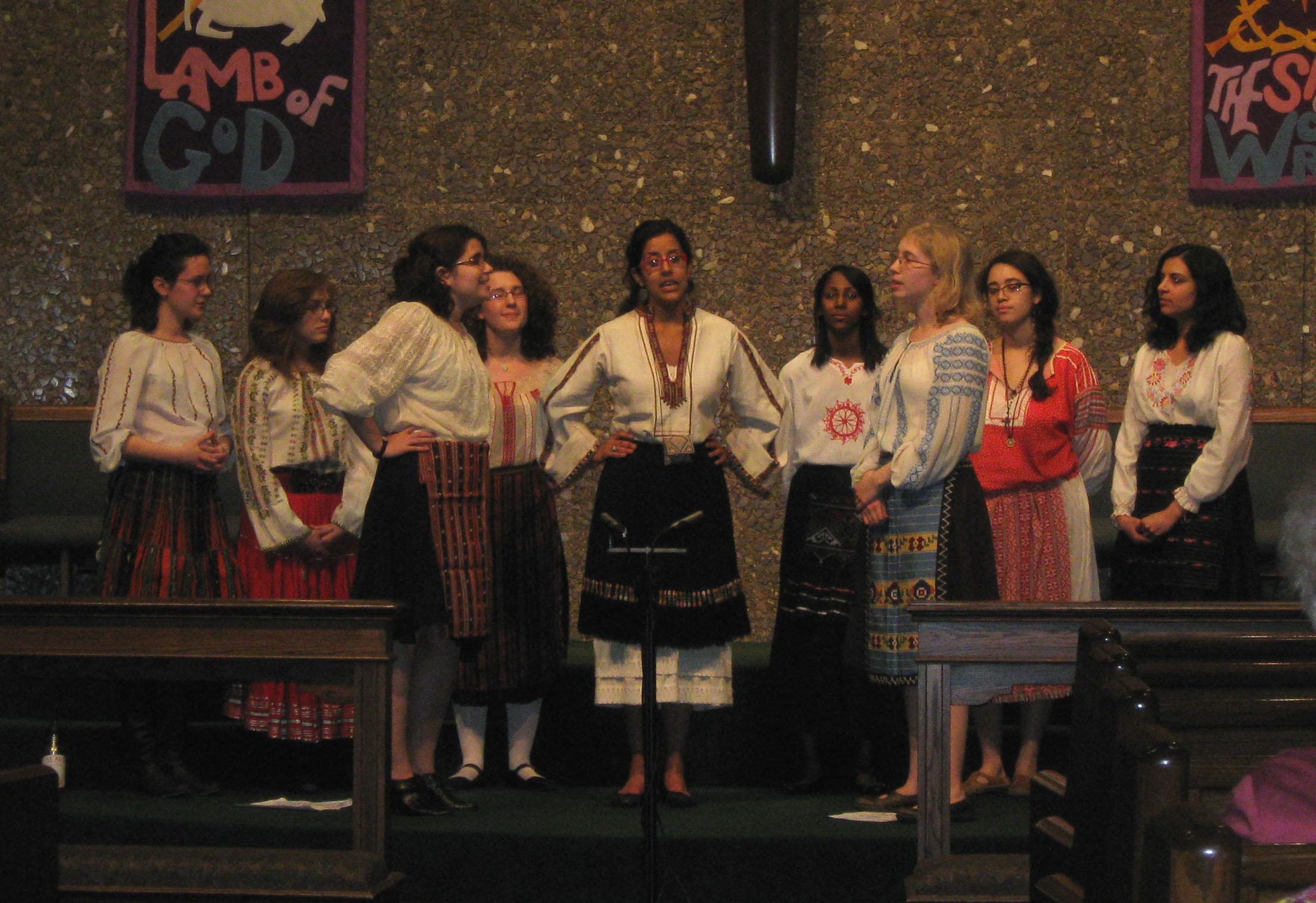 I walked into the church at 8:15, coffee in hand. The choir was practicing in the choir room, so I just hung out in the hallway reading the bulletin board over and over and drinking coffee. After about 4 minutes, Katie Buck walked in and smiled at me