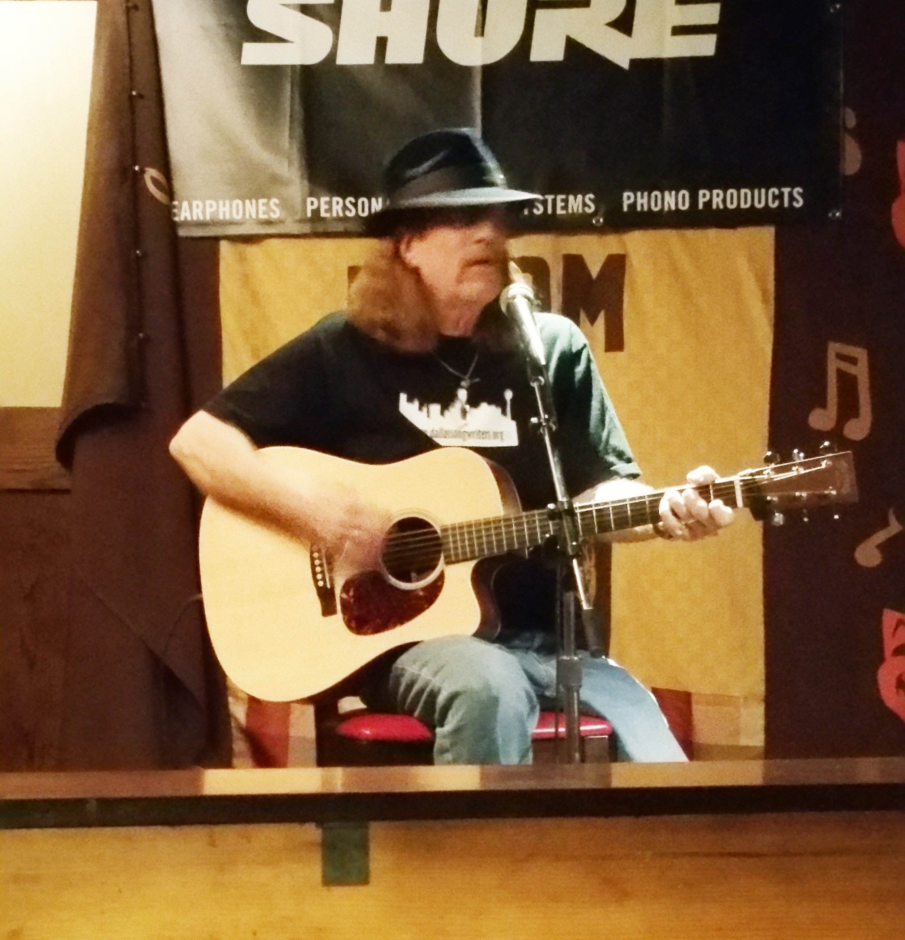 In October, I played a showcase at eSpiritu in Frisco. One of the other four songwriters was Robert – or so I thought. In the emails from the host, Ryan Michael Galloway, he said Richard Hunt was playing – along with Julie Jean White, myself, and Mudcat Reames. I thought he had Richard’s name wrong. When I arrived, I walked up to him and shook his hand. He said he was glad to see me again. While he was playing, his wife was standing at a table across the aisle from Cyndy and I taking pictures. I asked her if he was writing songs under the name of Richard.